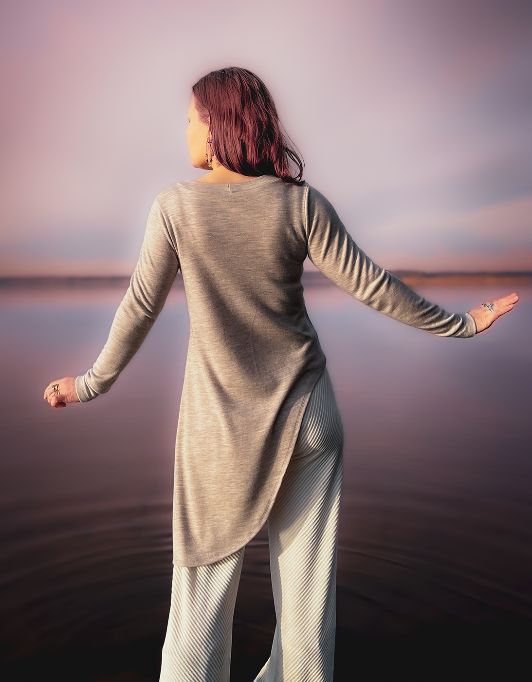 Aallot lanteillani, nousevat ja laskevat, kuun kiertäessä kehää. Olen alati virtaavaa vettä, muodosta toiseen. Merestä nousemassa, ilmassa tanssimassa, lumihiutaleena leijumassa, maan kupeita virtaamassa, pehmeästi peittämässä, mereen palaamassa, kevään koittaessa.