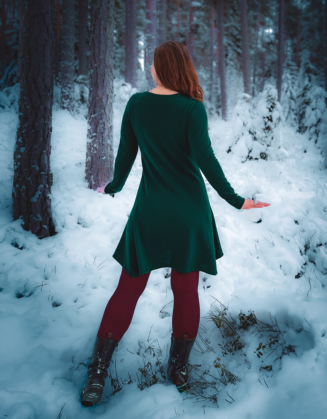 OMILLA MITOILLA: Voin muokata hihojen tai helman pituutta tarvittaessa. Myös mekon helman levitys vyötäröltä ja lanteilta onnistuu eli kahden koon yhdistelmät A-vartaloisille. Jos avoin pääntie ei ole sinun juttu voin myös tehdä mekon molemmilta puolilta pienemmällä venepääntiellä. Kirjoita tilauksen lisätietoihin tai laita sähköpostilla muokkaustoiveesi. Kaikenlaiset toiveet onnistuu kyllä.