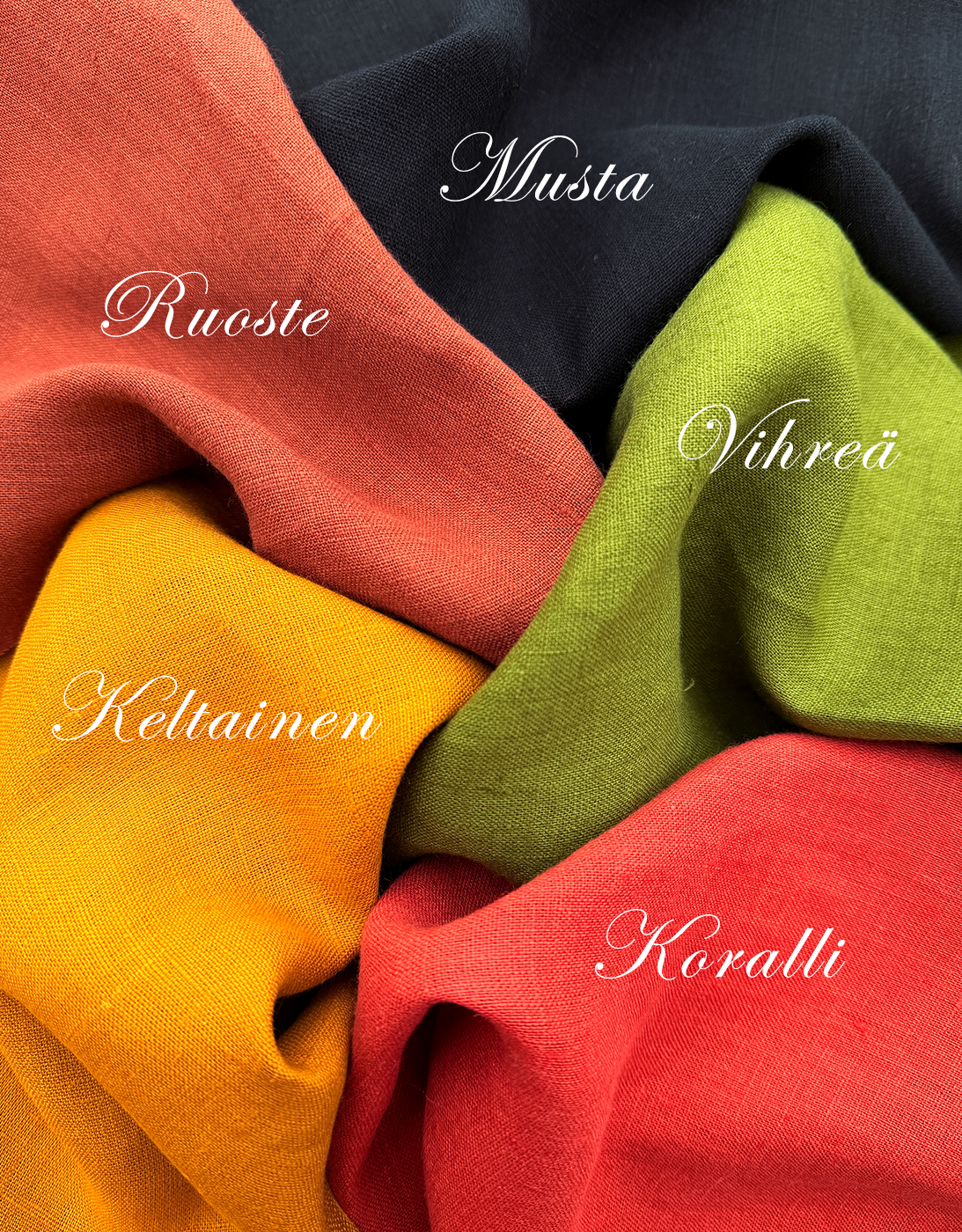 Lisäksi voin tehdä tämän kuminauhavyötäröisen hameen myös kaikissa muissa varastossa olevissa pellavan väreissä, joita mallistossa ei vielä ole eli mustana ja korallina tällä hetkellä.