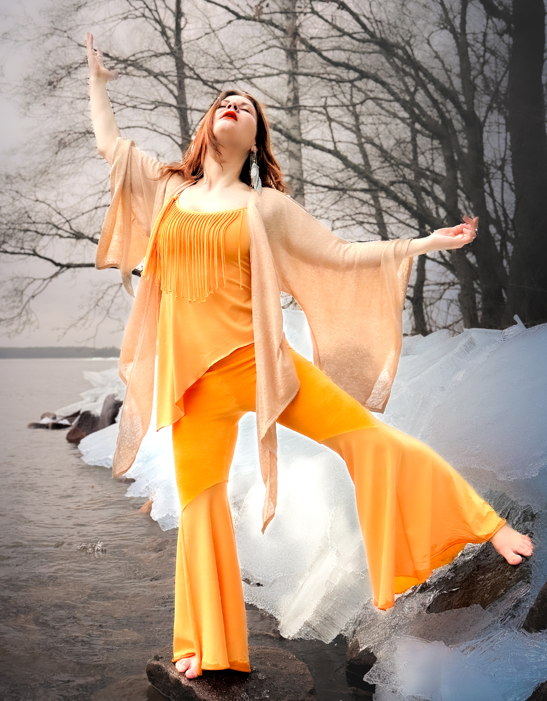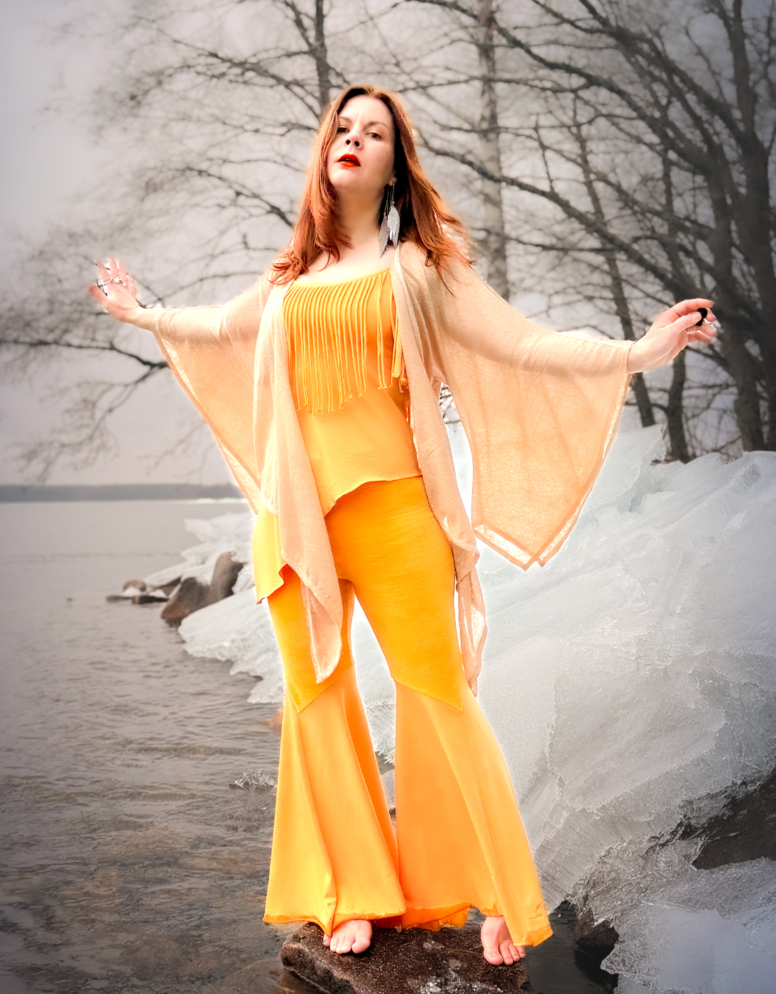 Housut ovat leggingsien tapaan joustavat ja istuvat. 103cm sivunpituus osuu maahan n.164-168cm pitkillä jalan pituudesta riippuen. Tyylikysymys haluaako nämä maata laahaavina ja hiukan ylipitkinä vai aavistuksen vajaamittaisina.