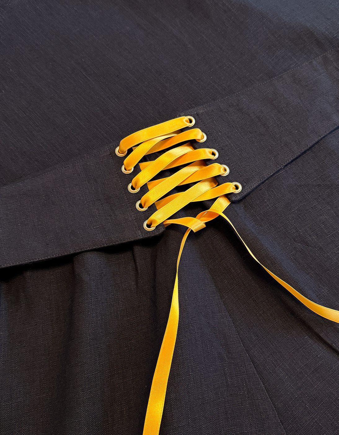 Upea nyörivyö 100% pellavasta. 7cm leveä vyö on paksulla tukikankaalla tuettu, eikä siis jousta.