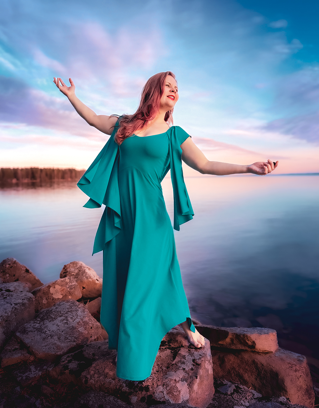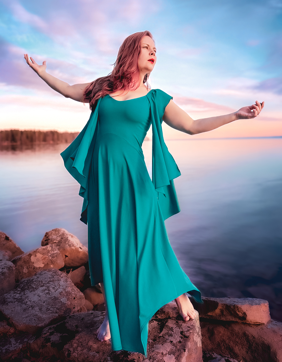 OMILLA MITOILLA: Ompelen nämä mekot tilauksesta, joten erilaiset mittamuutokset onnistuu tarvittaessa. Pyynnöstä saat esimerkiksi helmaan lisää pituutta. Kirjoita tilauksen lisätietoihin, jos haluat mekon lyhyemmällä tai pidemmällä helmalla tai laita viestiä. Voit kirjoittaa suoraan haluamasi pituuden tai esim. +10cm pituuteen. Mittatilauksena tämä malli onnistuu myös mustasta, smaragdinvihreästä tai vaaleammasta ikimeren turkoosista Tencel trikoosta.